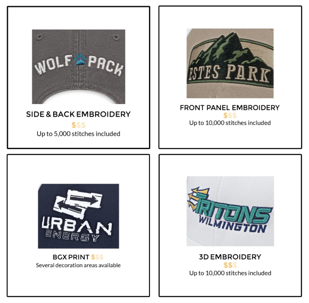 Upload your logo, pick your style, and select your decoration type.